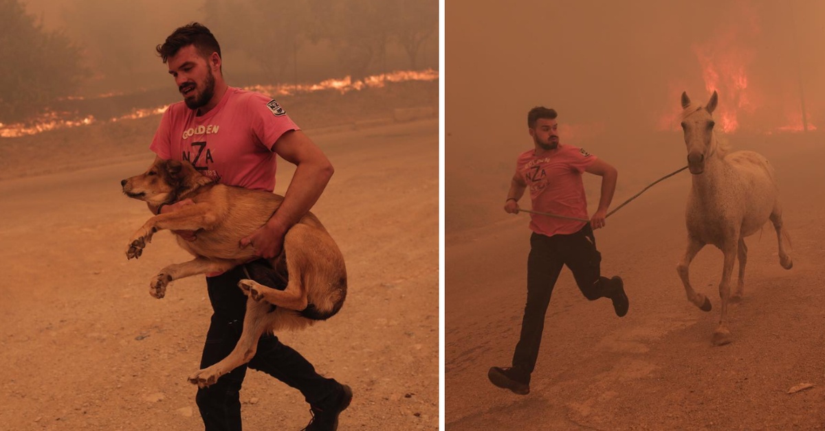 Млад фармер од Грција си го ризикуваше животот за да си ги спаси животните од пожарите кај Атина
