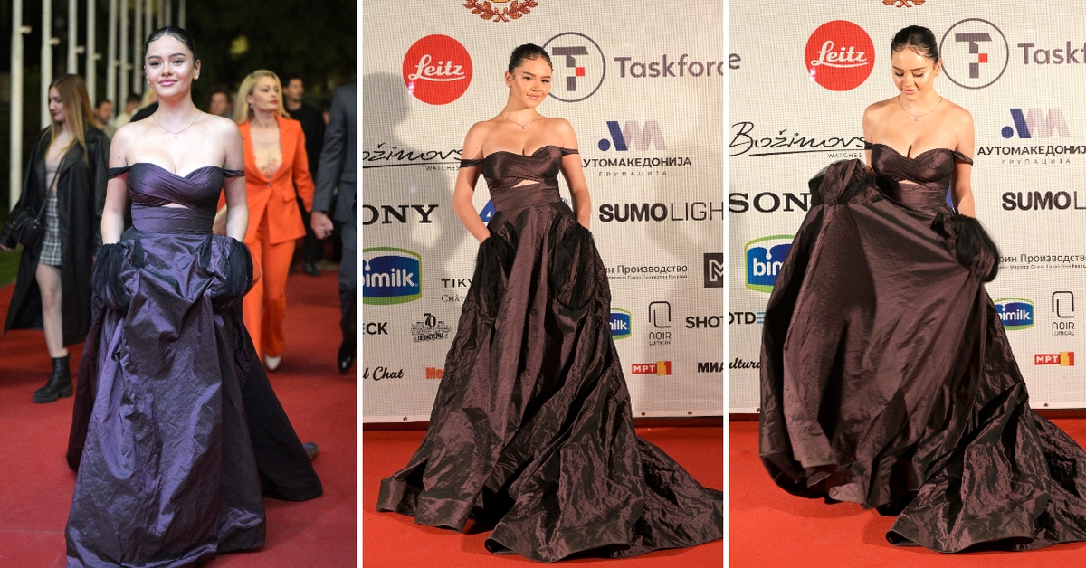 Младата актерка Марија Јанчевска со силен стилски отпечаток на црвениот тепих на „Браќа Манаки“