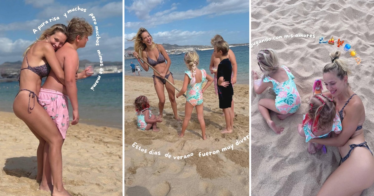 На фотографиите на плажа, убавата Аргентинка позира со синовите Ноа и Елиас, како и со ќеркичките Вида и Сиело.