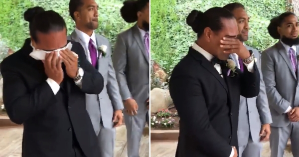 Младоженец не може да си ги задржи солзите кога ќе ја здогледа својата сакана во венчаница