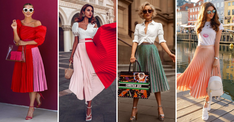 Со високи потпетици или со патики, со краток горен дел или со кошула, со памучна или со свилена маичка... Комбинациите со плисирани здолништа се безброј. Инспирирајте се од популарните модни блогерки како да ги носите ова лето: