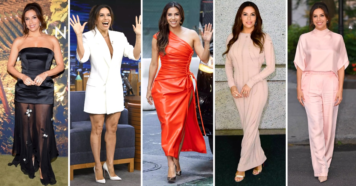Додека се дружеше со Џими Фелон во неговото шоу „The Tonight Show“, Ева шармираше во бел краток сако-фустан со складни салонки.