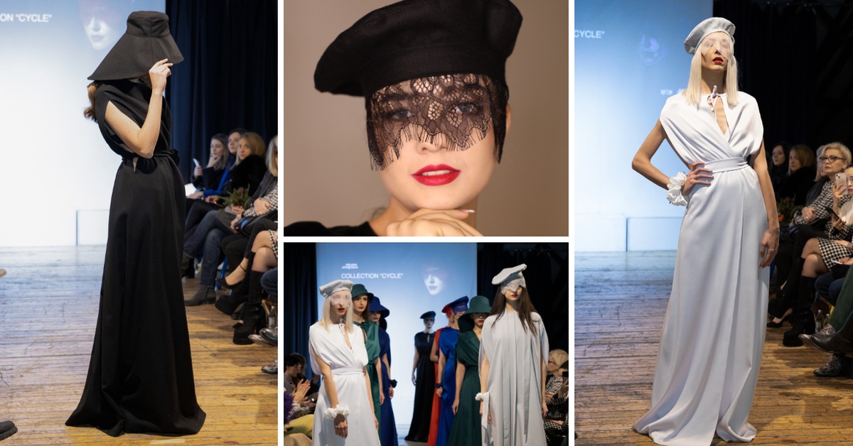 На изложбата можевме да видиме 10 модела, 7 шапки и 5 модни додатоци за коса во бела, зелена, црвена, сина и црна боја. Ова се боите што можат да се најдат на македонската народна носија, а тие вечерта ги обоија и просториите на „Јавна соба“ и го раскажаа своето значење. Па така, видовме два модела во бела боја – невиност и почеток, два во зелена боја – среќа и плодност, два модела во црвена боја – љубов, војна и крв, два модела во сина боја – лојалност, меланхолија и тага, и два модела во црна боја – смрт и крај. По овој редослед е претставен и еден циклус – циклус на животот. А оттаму и името што го носи оваа колекција „Циклус/Cycle“.