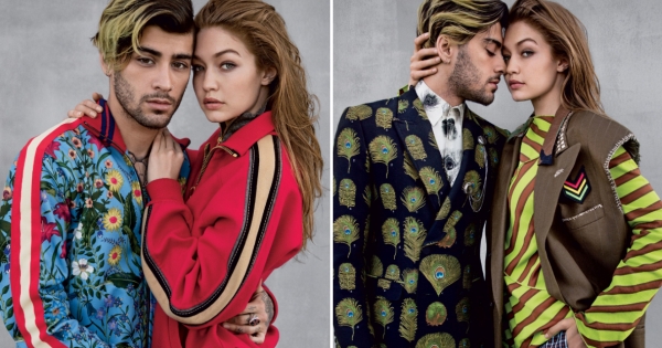 Корицата им припадна на Џиџи и Зејн, кои позираа во облека од модната куќа Гучи.