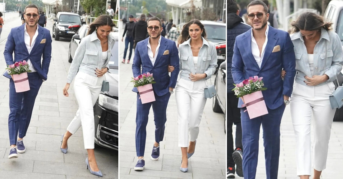 37-годишниот српски пејач и поранешната мисица насмеани и среќни позираа на забавата. Зорана беше облечена во двобојна сино-бела комбинација, додека Саша шармираше во тегет костум и бела кошула.