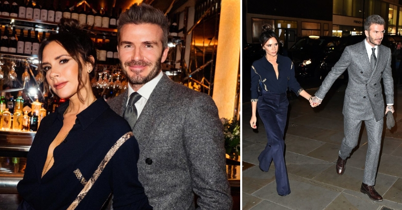 44-годишната дизајнерка и 43-годишниот поранешен фудбалер беа фотографирани додека рака за рака се упатуваа на свечена вечера во ресторан во Лондон. На настанот, организиран од GQ по повод затворањето на модната недела за мажи, Викторија носеше парчиња од сопствената колекција за сезоната есен/зима 2019 година.