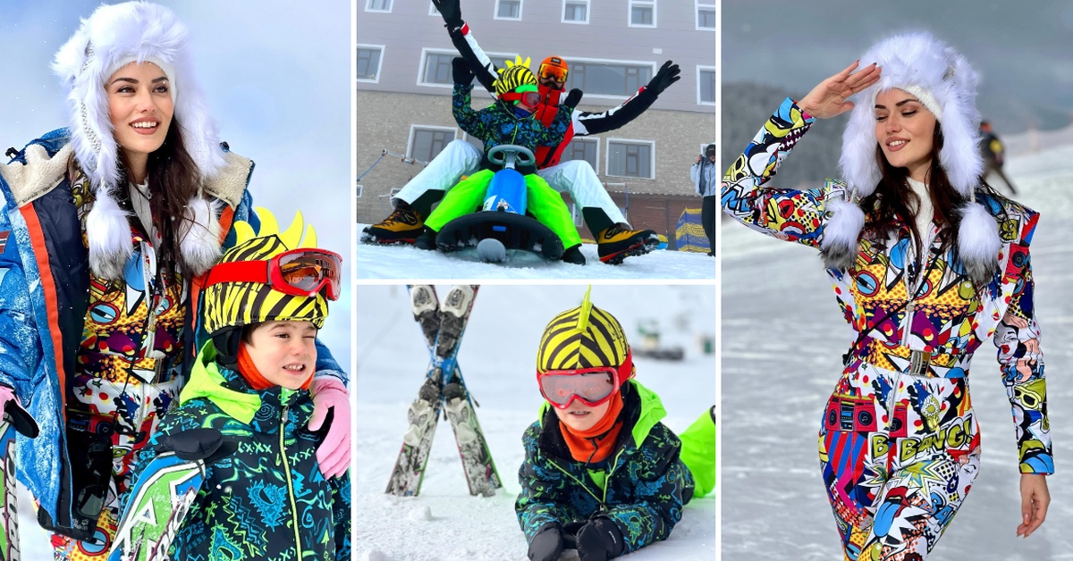 Турските актери и малото детенце во колоритна ски опрема се забавуваа на снежните стази и споделија фотографии на нивните Instagram профили.