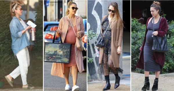 Во последниот триместар од бременоста, Алба преферира лежерен стил на облекување, а нејзините стајлинзи речиси секогаш вклучуваат долги џемпери или мантили.