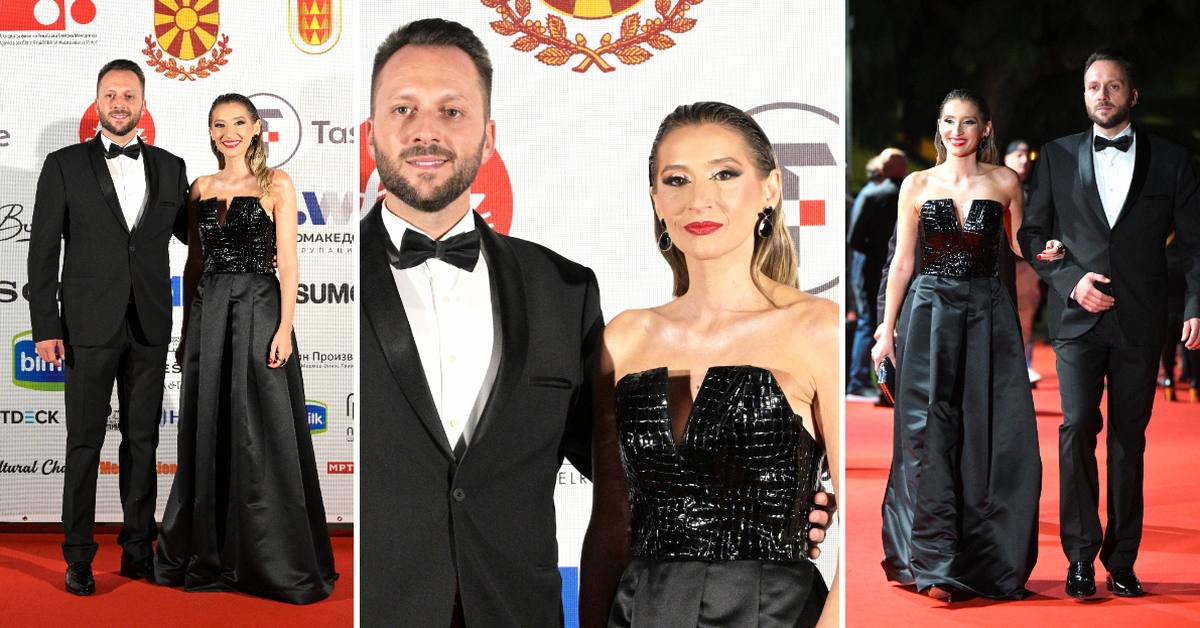 Успешната актерка со широка насмевка и модерен стајлинг шармираше на манифестацијата во Градот на конзулите, а беше придружувана од сопругот Ице Илијевски.