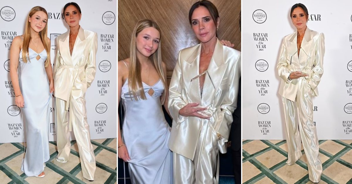 50-годишната дизајнерка на настанот во Лондон се појави со ќерката Харпер која е многу порасната. Двете беа облечени во свилени креации. Викторија шармираше во свилен костум, додека Харпер носеше долг фустан со отсечок под градите.