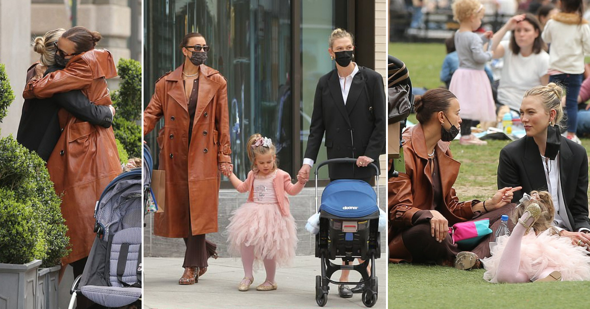Модерни пријателки: Моделите Ирина Шајк и Карли Клос уживаа во заедничка прошетка со нивните деца