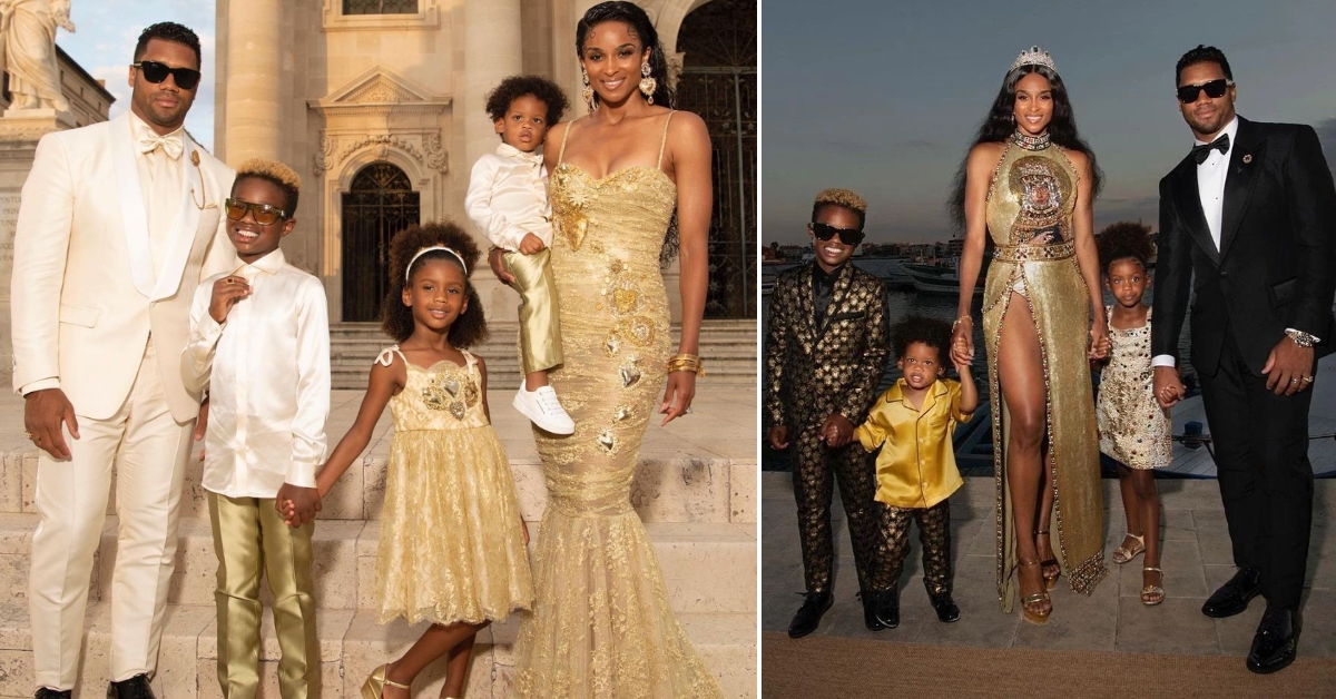 Модерно семејство: Сиара во златно со сопругот и трите деца на ревиите на Долче и Габана во Италија