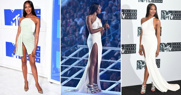 За време на свеченоста, Наоми се појави на сцената во бела асиметрична креација, која исто така доаѓа од ателјето на Максвел.