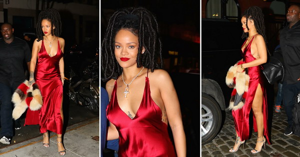 Ѕвездата од Барбадос блесна во Њујорк во елегантен фустан и со новата растафаријанска фризура. Облечена во црвена креација од брендот Are You Am I, Ријана прво го привлече будното фотографско око на папараците, а потоа изнуди комплименти од своите фанови.