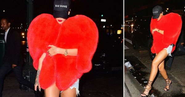 Музичката ѕвезда беше фотографирана во Њујорк во необично издание со крзнена наметка во форма на срце. Креацијата е дело на модната куќа Сен Лоран и чини 12.500 евра.