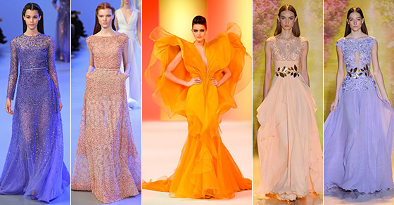 Ели Сааб слободно можете да го наречете крал на свечената облека за црвениот тепих и волшебник кој остварува женски соништа. Романтика, деликатност и женственост зрачат од колекцијата „The Promise of Spring“ на Сааб, инспирирана од делата на уметникот Лоренс Алма-Тадема.