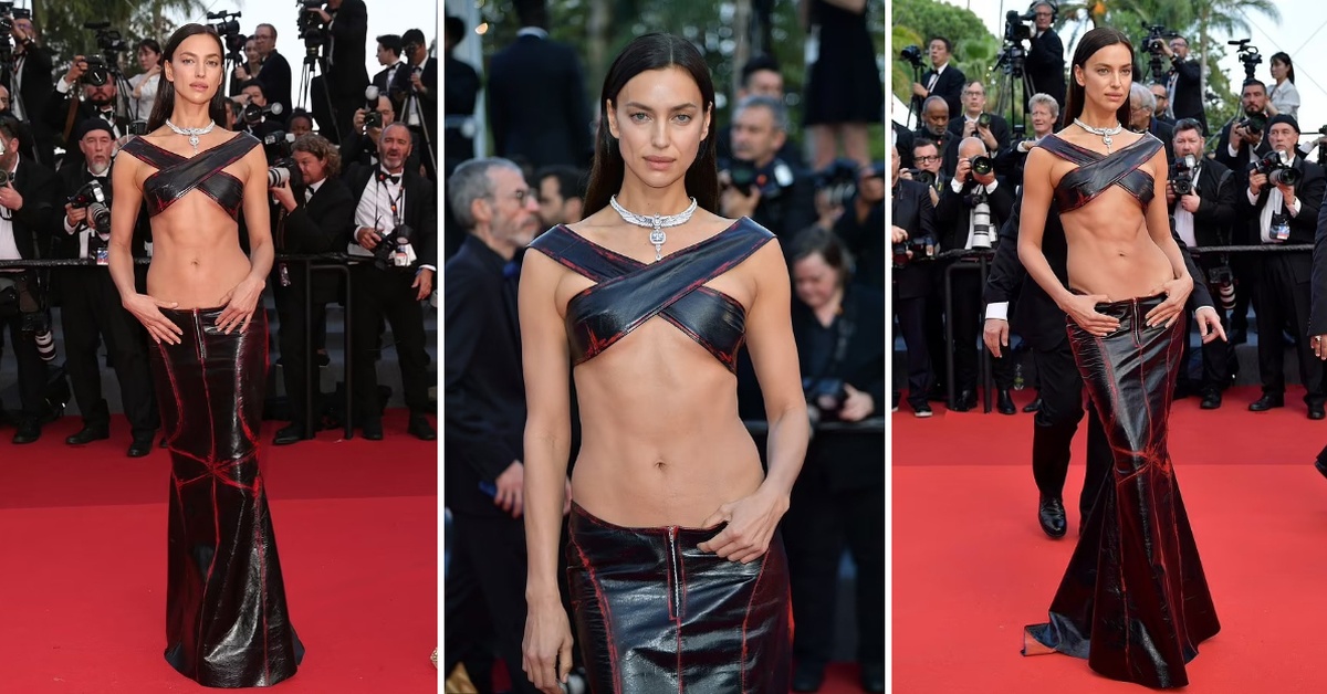 Модна утка? Ирина Шајк ококори очи во Кан со смело издание со ленти на градите и разголени стомачни