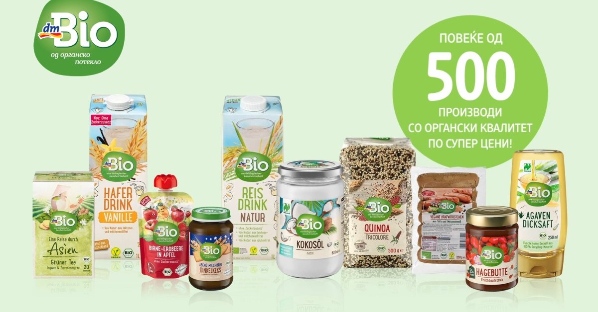 Со повеќе од 500 производи од сегментот на органска храна, од кои повеќе од 300 ѝ припаѓаат на сопствената марка на dm, dmBio, дрогериите на dm ја имаат најшироката понуда во сегментот на органска исхрана во земјава. Висококвалитетните производи, кои патем се изработени без употреба на вештачки ароми, бои и конзерванси, изобилуваат со широк спектар на вкусови, кои се автентични, благодарение токму на органското и контролирано производството.