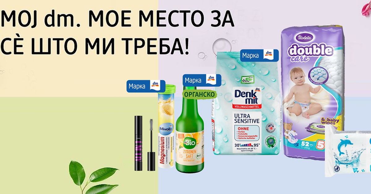 Дрогериите на dm во нашата земја се совршеното место за one-stop-shopping. Со својот асортиман од повеќе од 14.500 производи за нега и убавина, органска храна и додатоци, сѐ за вашето бебе, па сѐ до производи за вашиот дом и нега на вашите алишта, dm има навистина сѐ што ви треба за вас и вашето семејство.