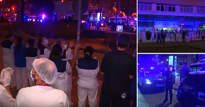 Моќни сцени во Шпанија: Медицински лица и полициски службеници си аплаудираат едни со други во знак на поддршка