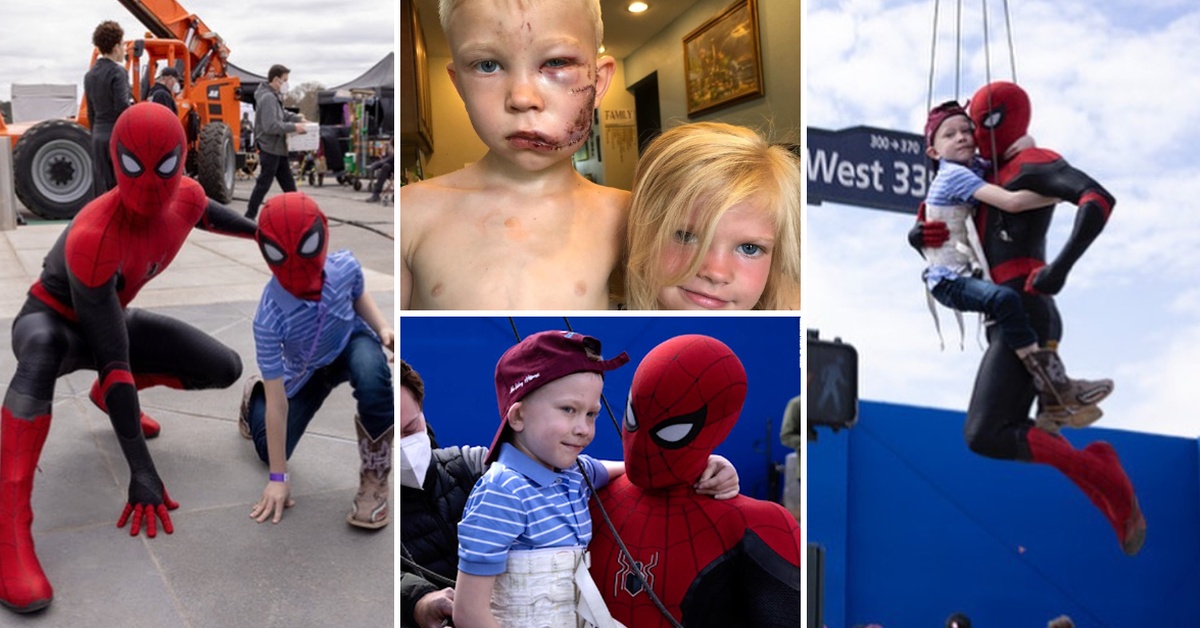 Смелото детенце, кое се здоби со страшна повреда на лицето и главата, неодамна доби прекрасно изненадување – покана да присуствува на сетот на новиот филм за Спајдермен и да се дружи со главните актери Том Холанд и Зендаја.