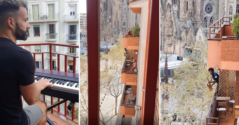 „Музиката против коронавирусот“: Пијанист од Барселона ја отсвири „My Heart Will Go On“ за соседите, саксофонист му се придружи