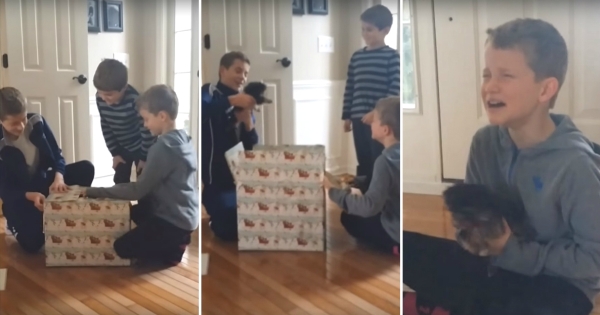 На три пресреќни братчиња таа желба им се исполни, откако родителите одлучиле предпразнично да ги израдуваат со нов крзнен член во семејството. Едно од децата не може да си ги запре солзите.