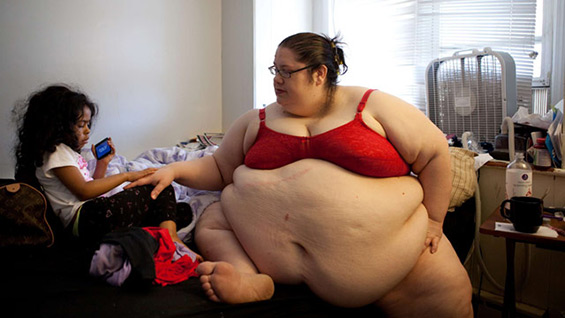 44-годишната Американка, која има за цел да стане најдебелата жена на светот, се разделила со својот долгогодишен партнер, па во купувањето и подготвувањето на храната ѝ помага малата Жаклин.