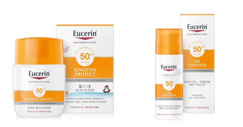 Зависно од типот на кожата, Eucerin предлага SUN Fluid Sensitive protect 50+ крем за масна и осетлива кожа, SUN PHOTOAGING Control CC нијансиран крем достапен во две нијанси (светла и потемна) со кој се постигнува рамномерен и природен тен на кожата, SUN крем-флуид за нега на нормална до комбинирана кожа и SUN Oil крем за нега на сува кожа.