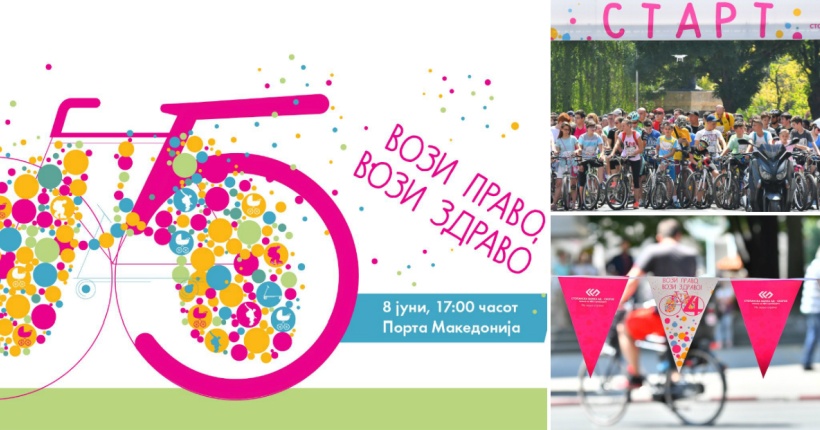 Најмасовното возење со велосипеди, ролерки, тротинети (електрични или обични), скироли и бебе колички ќе се одржи на 8 јуни во Скопје. Стартот на ревијалната трка „Вози право, вози здраво“, која се одржува по петти пат во организација на Стопанска банка АД – Скопје, е од салата Борис Трајковски во 18 часот.