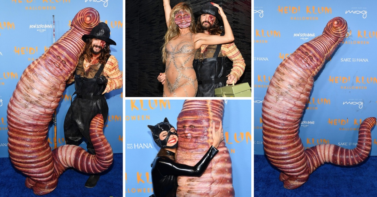 Најлудата маска досега: Хајди Клум маскирана како црв, а сопругот како рибар на забавата за Халовин