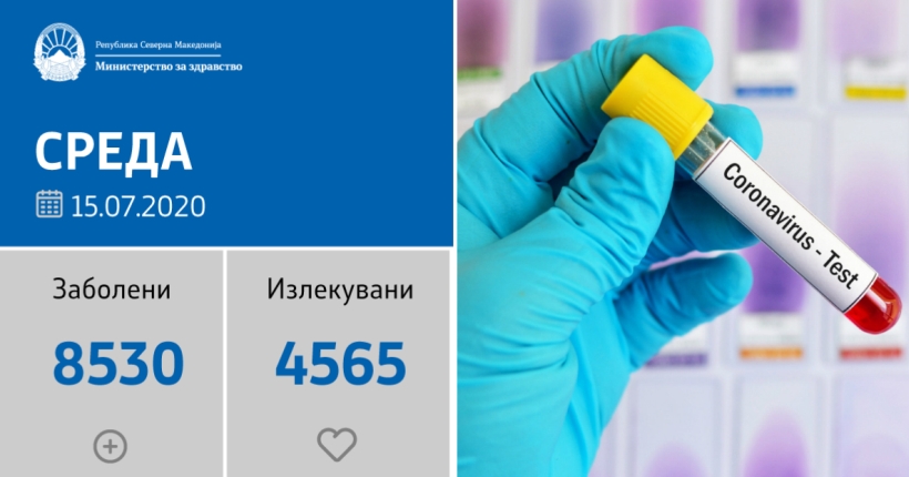 Вкупната бројка на дијагностицирани со КОВИД-19 во нашата земја од почетокот на епидемијата изнесува 8.530, бројката на оздравени пациенти е 4.565, на починати е 393, а во моментов, бројот на активни случаи во земјата изнесува 3.572.