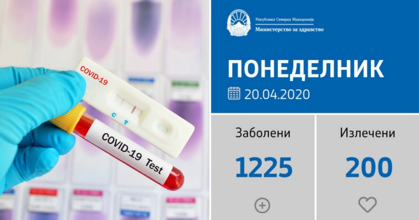 Вкупниот број на заболени лица кај нас се искачи на 1.225.