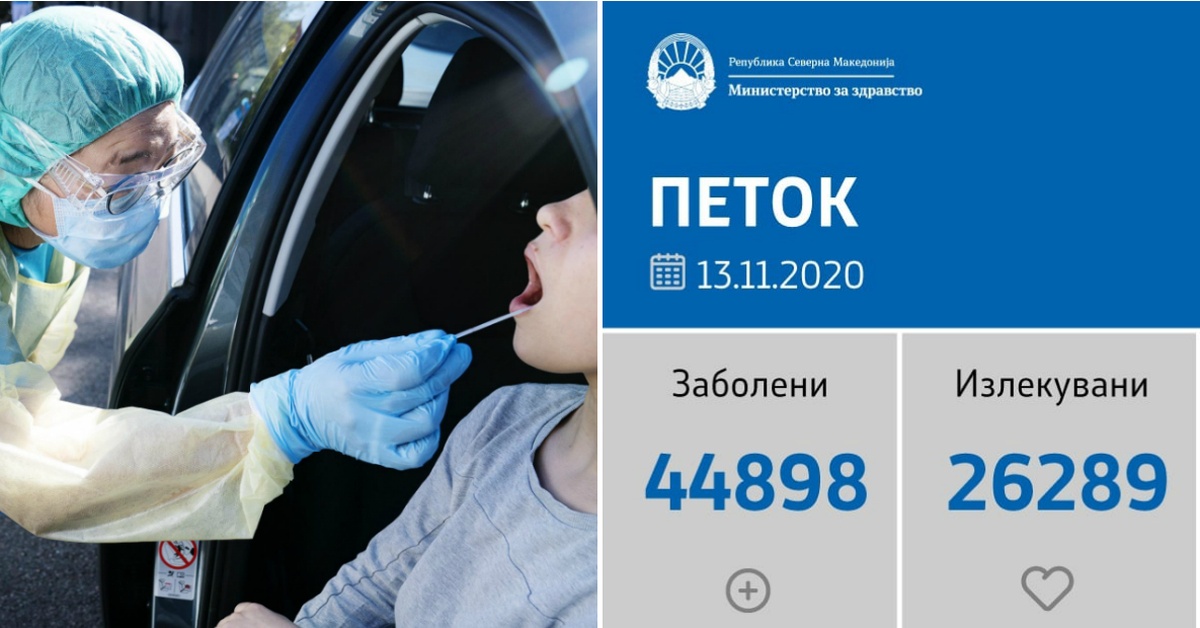 Вкупната бројка на ковид дијагностицирани во нашата земја од почетокот на епидемијата изнесува 44.898, бројката на оздравени пациенти е 26.289, на починати е 1.263, а бројот на активни случаи изнесува 17.346.