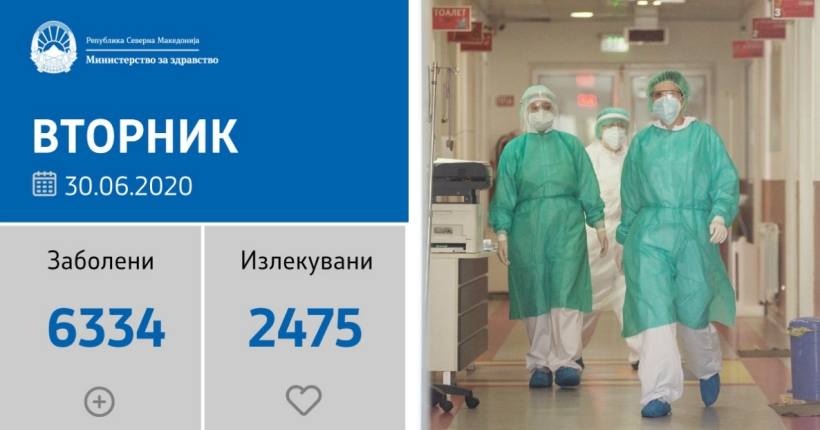 Вкупната бројка на дијагностицирани со КОВИД-19 во нашата земја од почетокот на епидемијата изнесува 6.334, бројката на оздравени пациенти е 2.475, на починати е 302, а во моментов бројот на активни случаи во земјата изнесува 3.557.
