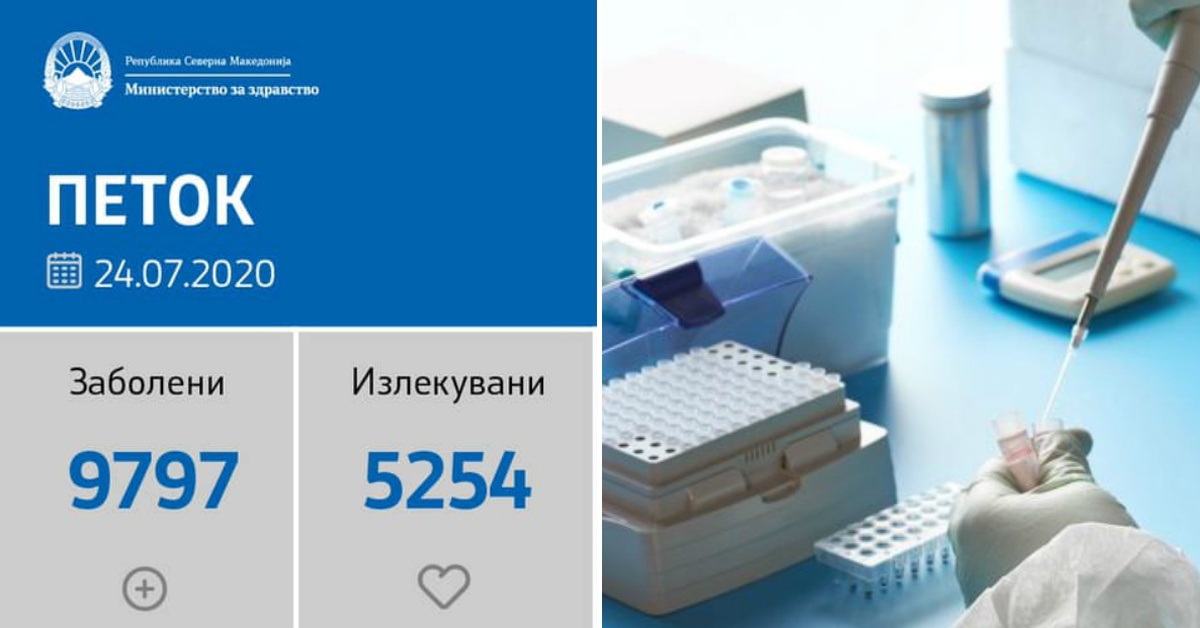 Вкупната бројка на ковид дијагностицирани во нашата земја од почетокот на епидемијата изнесува 9.797, бројката на оздравени пациенти е 5.254, на починати е 451, а во моментов бројот на активни случаи во земјата изнесува 4.092.