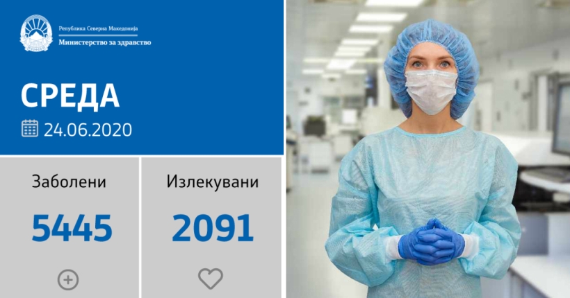 Вкупната бројка на дијагностицирани со КОВИД-19 во нашата земја од почетокот на епидемијата изнесува 5.445, бројката на оздравени пациенти е 2.091, на починати е 259, а во моментов, бројот на активни случаи во земјата изнесува 3.095.