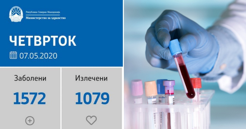 Вкупната бројка на КОВИД-19 дијагностицирани во нашата земја од почетокот на епидемијата изнесува 1.572, бројката на оздравени пациенти е 1.079, на починати е 89, а во моментов бројот на активни случаи во земјата изнесува 404.