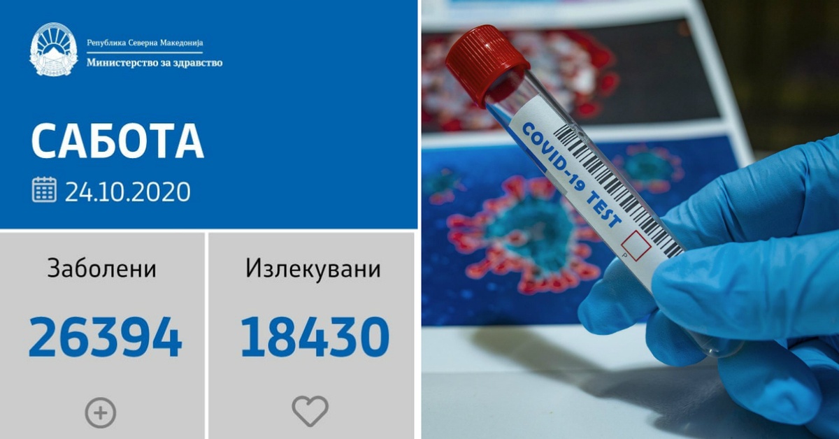 Вкупната бројка на ковид дијагностицирани во нашата земја од почетокот на епидемијата изнесува 26.394, бројката на оздравени пациенти е 18.430, на починати е 897, а во моментов бројот на активни случаи во земјата изнесува 7.067.