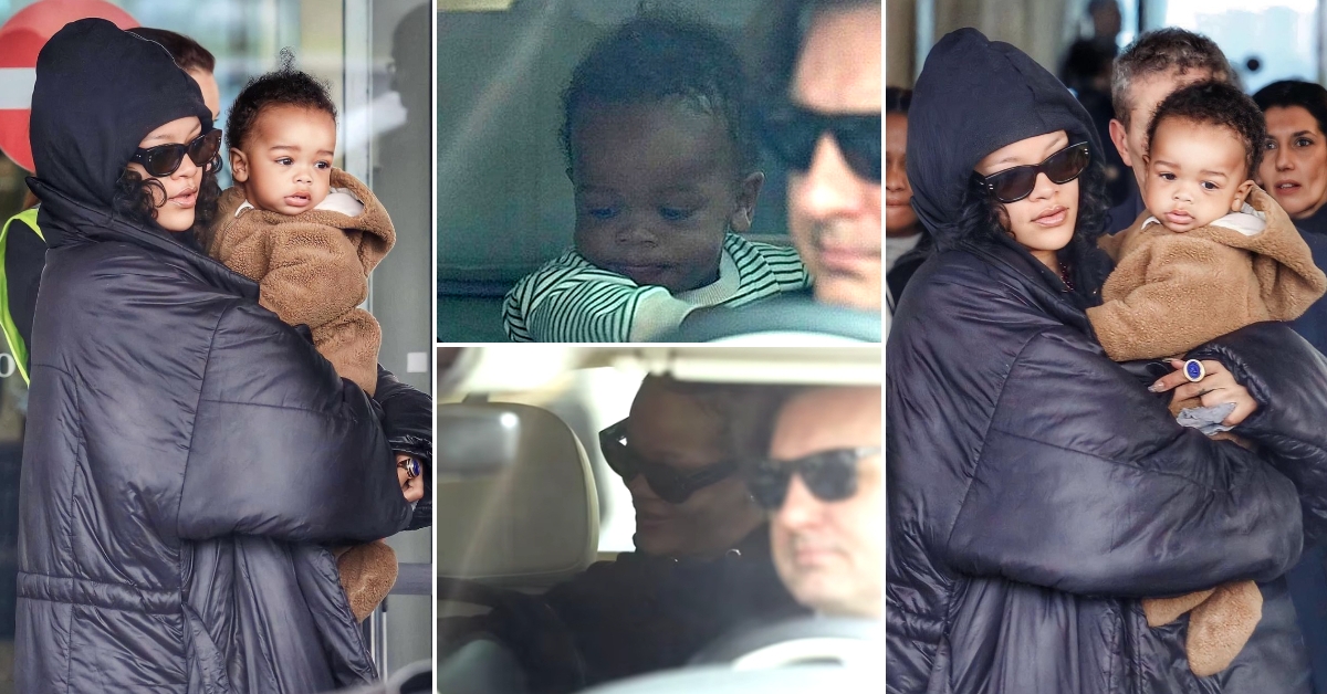35-годишната пејачка и 34-годишниот рапер, кои го очекуваат второто дете, ја имаа најслатката придружба – деветмесечното синче. Ријана го носеше во прегратка бебенцето додека излегуваше од аеродромот.
