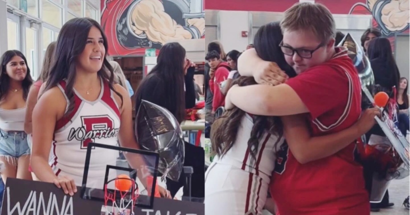 Најслатката реакција: Мажоретка со специјален натпис покани момче со Даунов синдром да ѝ биде партнер на училишна забава