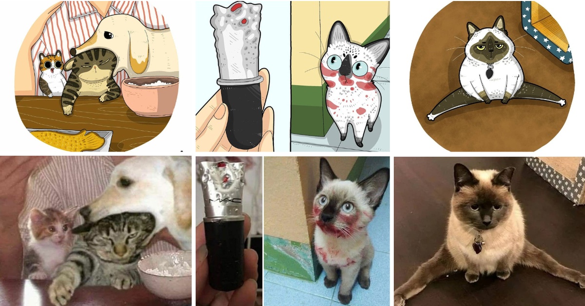 На него, артистот Роки споделува цртежи од најсмешните фотографии од мачки кои некогаш станале вирален хит на интернет.