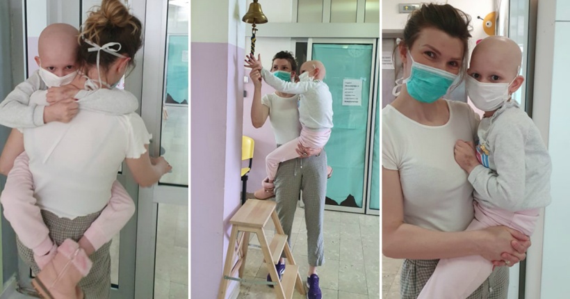 „Нашата пациентка Румеса, здрава ја праќаме дома! Таа ја победи леукемијата и срамежливо заѕвони на нашето ѕвонче!“