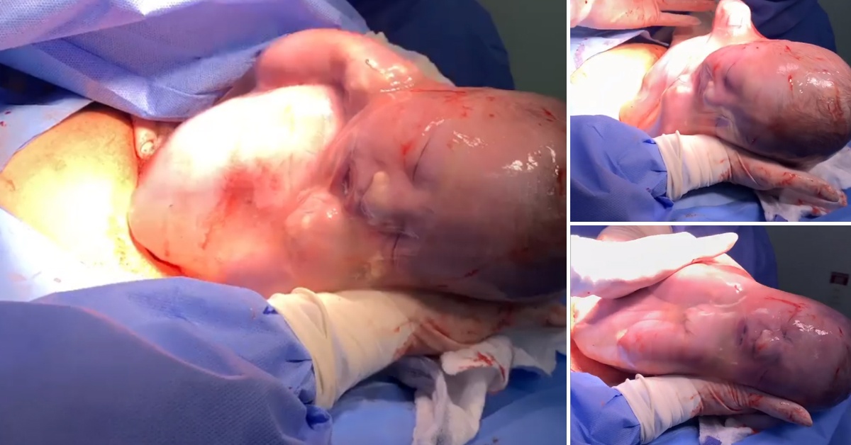 Бебенцето дојде на овој свет со царски рез во непробиена амнионска обвивка, а раѓањето беше овековечено со видео кое докторката го сподели на својот профил.