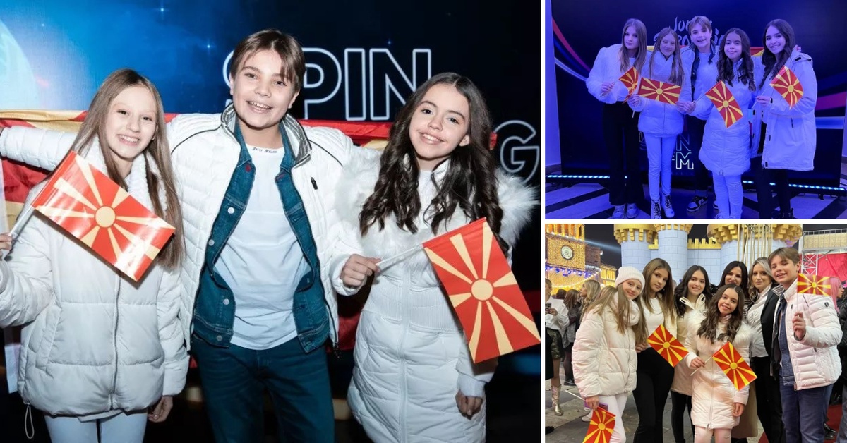 Нашите претставници присуствуваа на отворањето на детската Евровизија и гордо го вееја македонското знаме. Музичкото трио беше облечено во комбинации со бели јакни.