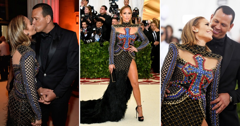 Насмеани и заљубени: Џенифер Лопез во креација од Balmain заедно со Алекс Родригез на МЕТ балот
