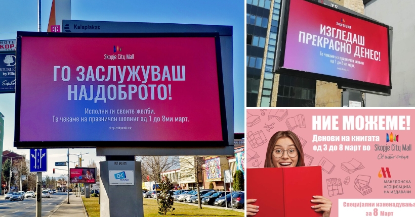 Во периодот пред и за 8 ми март како и секоја година продавниците подготвија бројни специјални понуди, од Скопје Сити Мол подароци и изненадувања за дамите кои ќе го посетат молот како и супер забавно фоткање со Инстаграм рамки, но тоа не е сѐ, има и саем на книга за сите љубителки на пишаниот збор.
