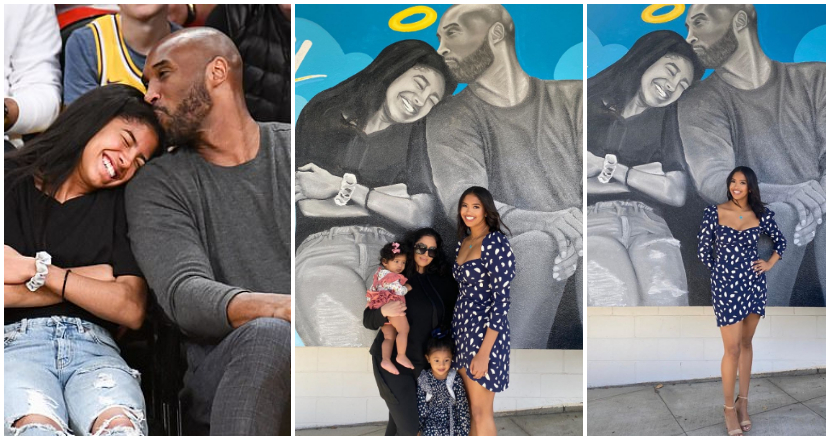 37-годишната сопруга на прерано починатиот кошаркар Коби Брајант со насмевка позираше со трите ќерки Наталија, Бјанка и Капри пред мурал од Коби и Џиџи. Фотографиите таа ги сподели на Instagram заедно со текстот од песната „Smile“ од Нет Кинг Кол.