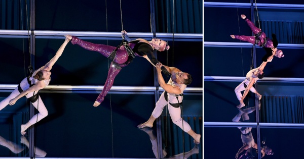 Музичката ѕвезда ѝ пркосеше на гравитацијата додека танцуваше и пееше висејќи од висококатница. Таа ја изведе својата нова песна „Beautiful Trauma“.