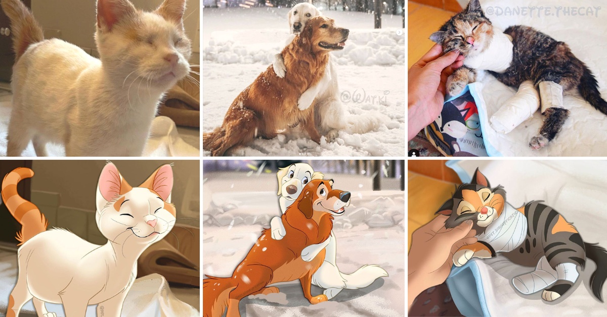 Со помош на својот талент, 23-годишната Германка им прави неодоливи трансформации на домашни миленици. Таа ги претвора нивните фотографии во прекрасни илустрации во Дизни стил, а потоа ги споделува на Instagram.